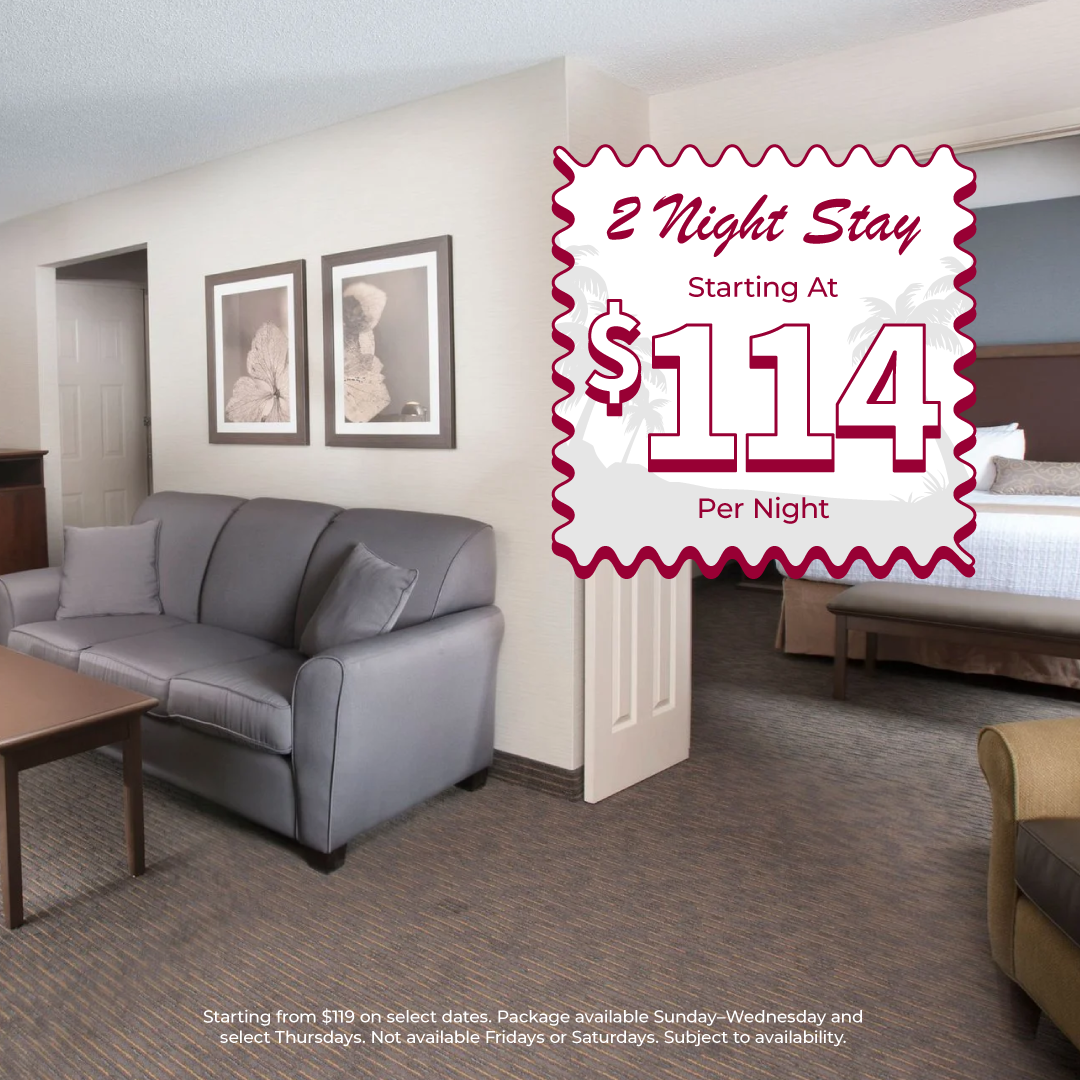 Book your Tropical Escape Package and receive exclusive perks to this package. All two-night stays will receive $100 in dining credit, $50 in arcade credit.